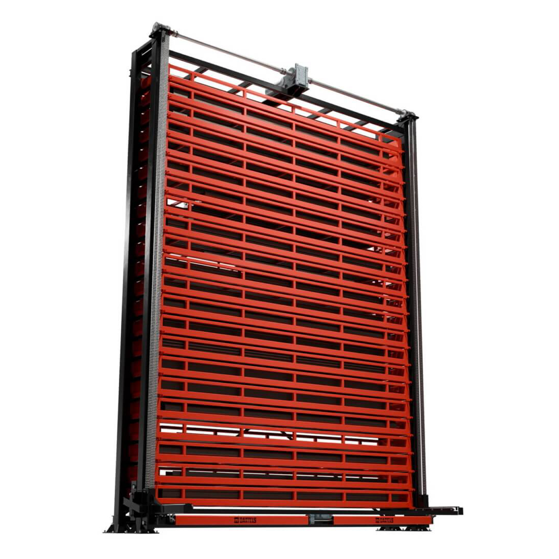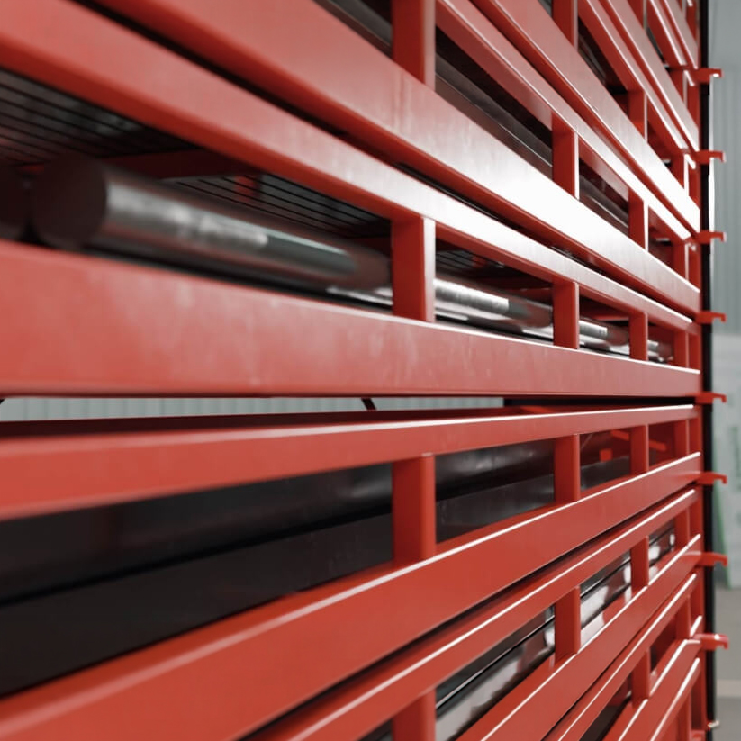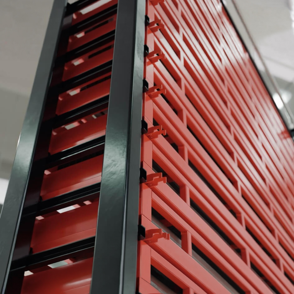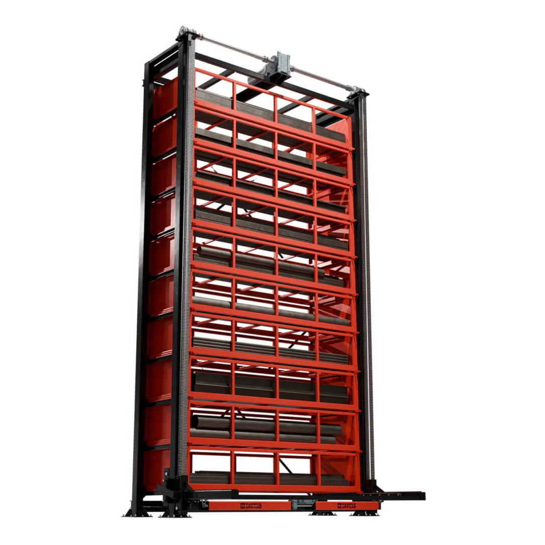 Take your warehouse to a new level with the automatic Tower from Bartels-Conjara. Full use of height under safe conditions, ideal for storing bars, pipes and profiles. By pressing a button, the lifting Unit removes the desired drawer from the shelf and lowers it to an ergonomic height. After filling or emptying, the drawer is automatically returned to storage.