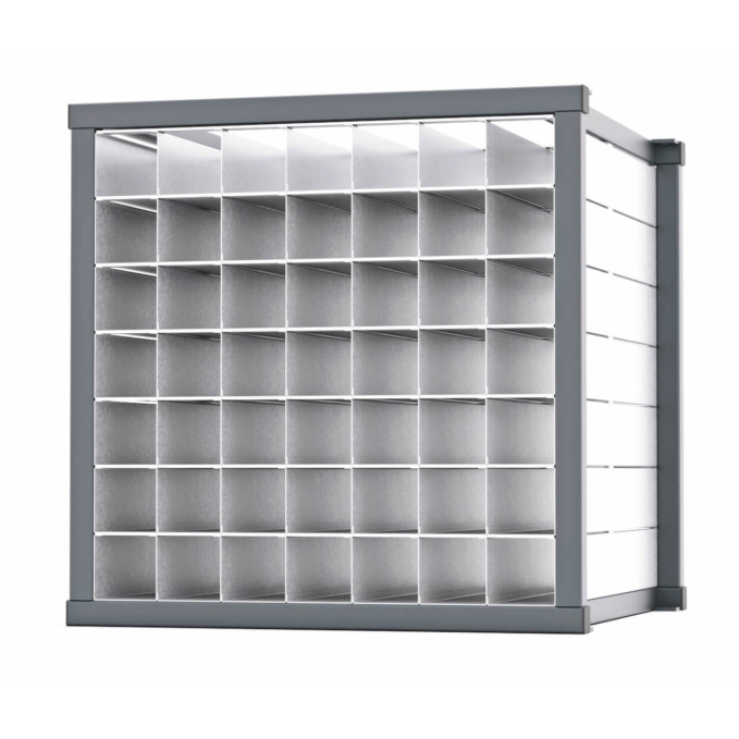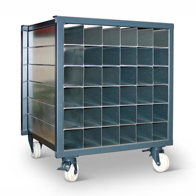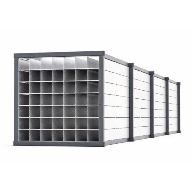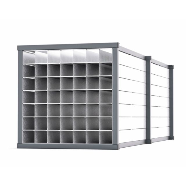 Stable and solid steel structure for compact storage of rod-shaped materials. Fixed partition rack comes completely assembled and fixation is not necessary.