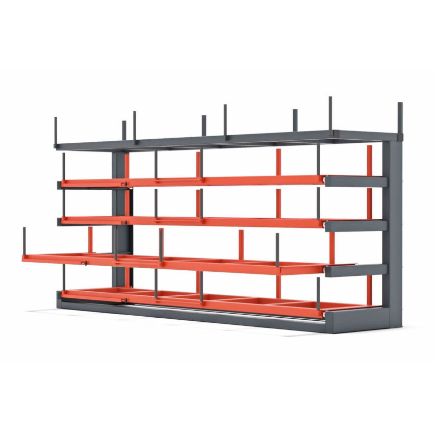 Drawers are drawn up to 2/3 of their depth with the help of ball bearings. Each drawer has its own pull-out handle. The rack system comes completely assembled and welded and it only needs to be fixed to the desired location.